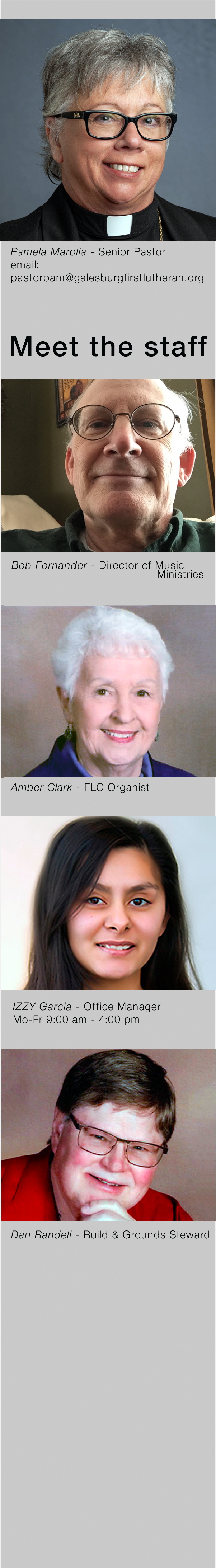Izzy’s email address is: info@galesburgfirstlutheran.org